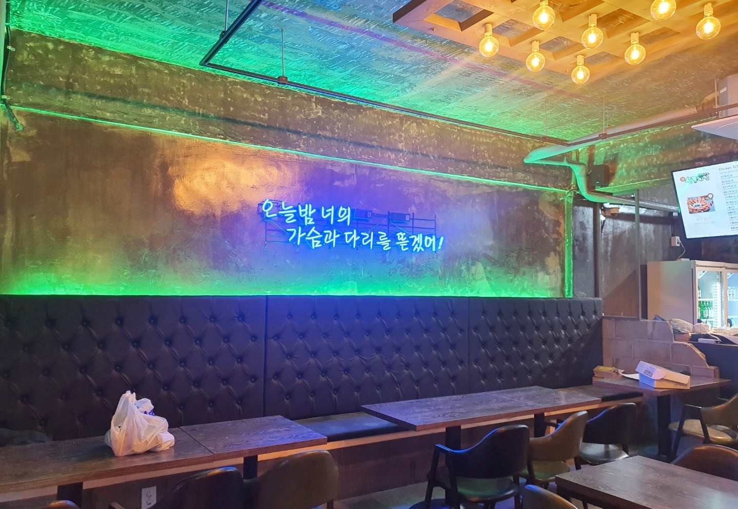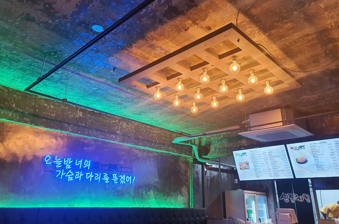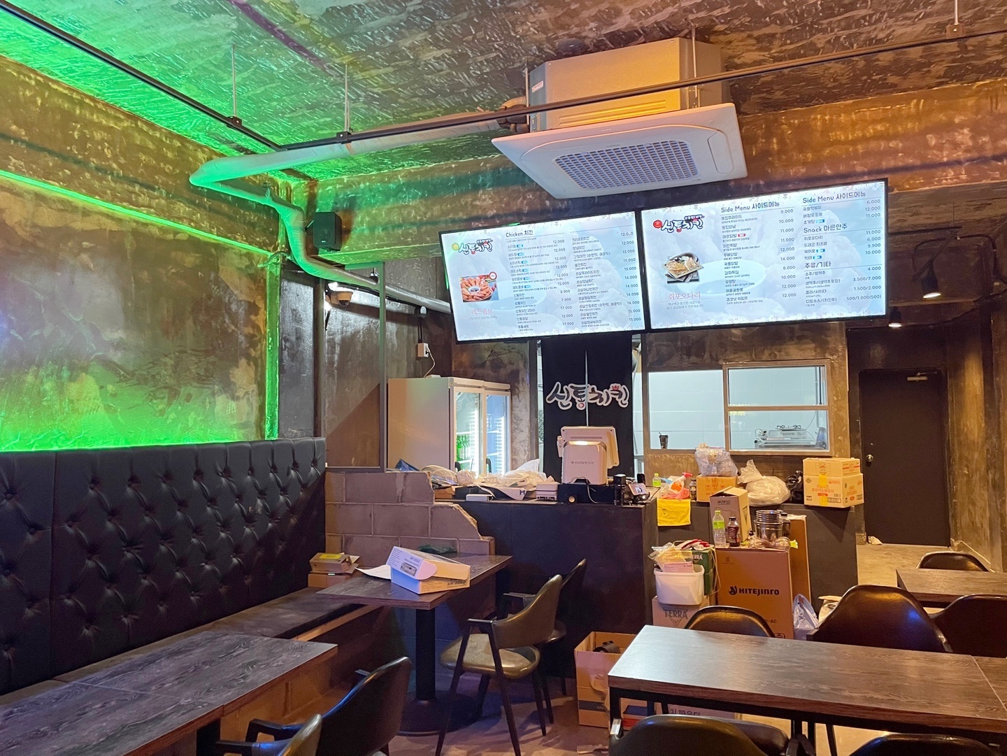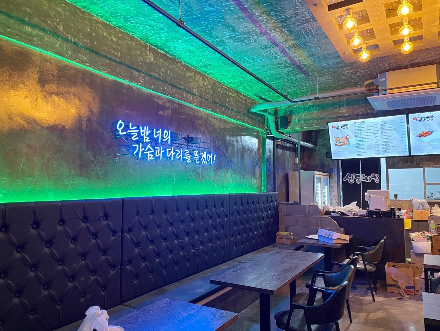 이렇게 인더스트리얼한 치킨집 인테리어가 완성되었습니다.