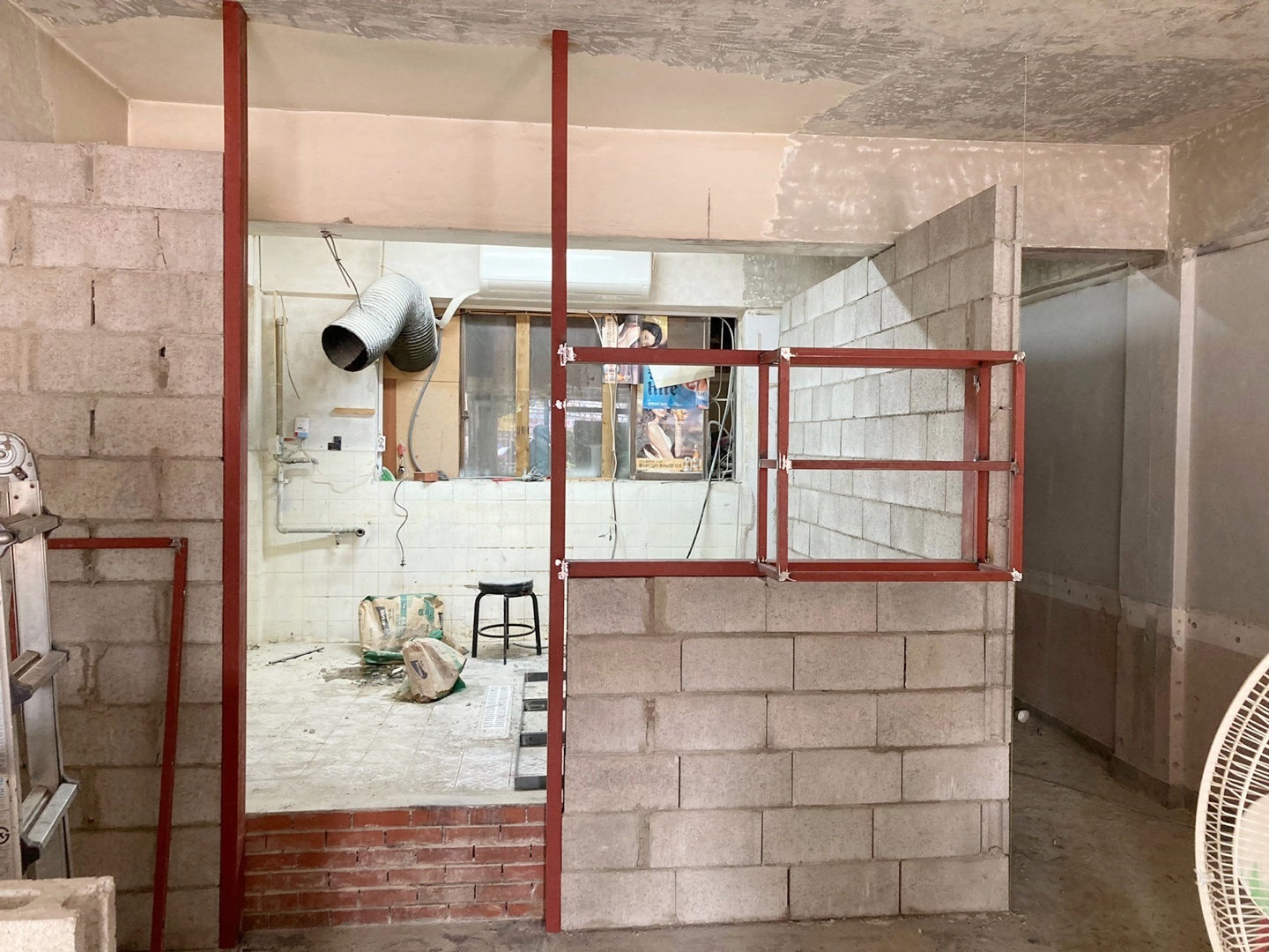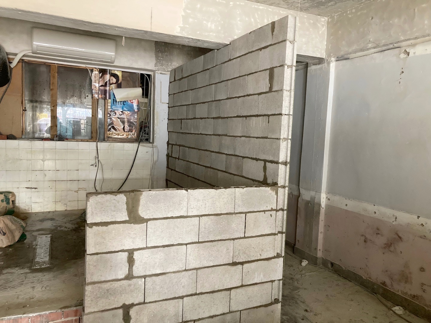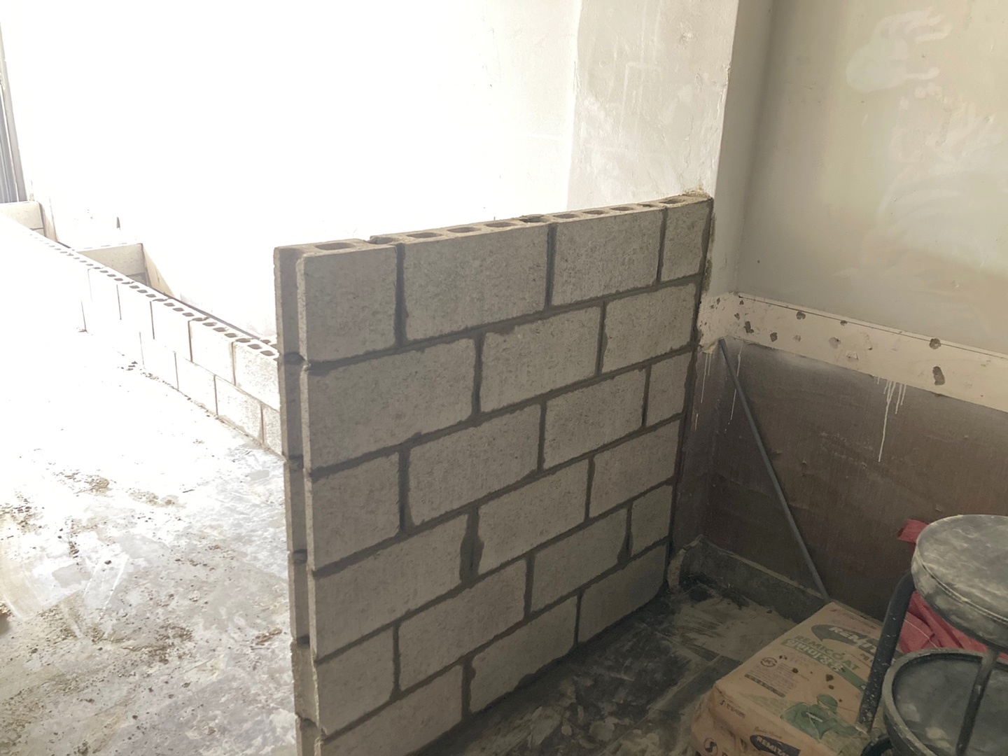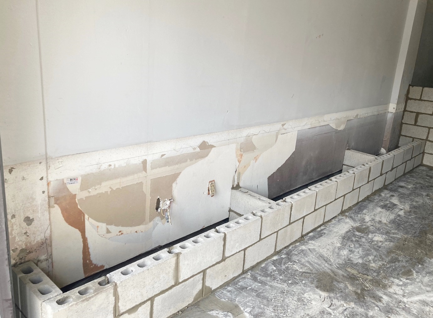 주방 앞 파티션도 조적으로 쌓아주었고 추후에는 살짝 부셔 빈티지한 느낌을 주었습니다.