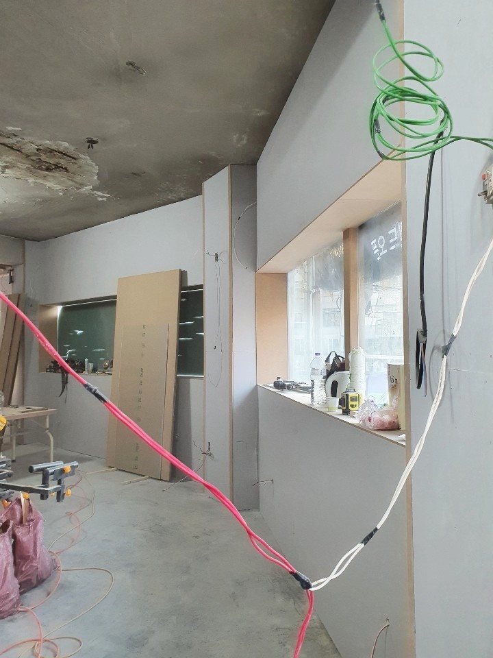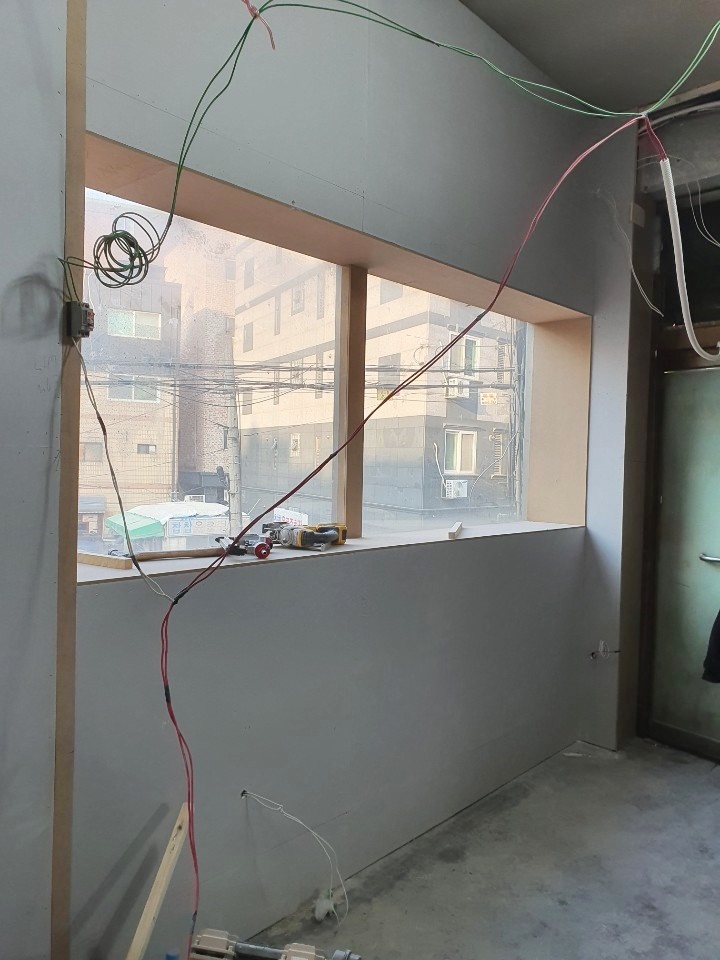 벽면에는 통차이 크게 나있었는데 전부 살려서 진행하기로 하였습니다.