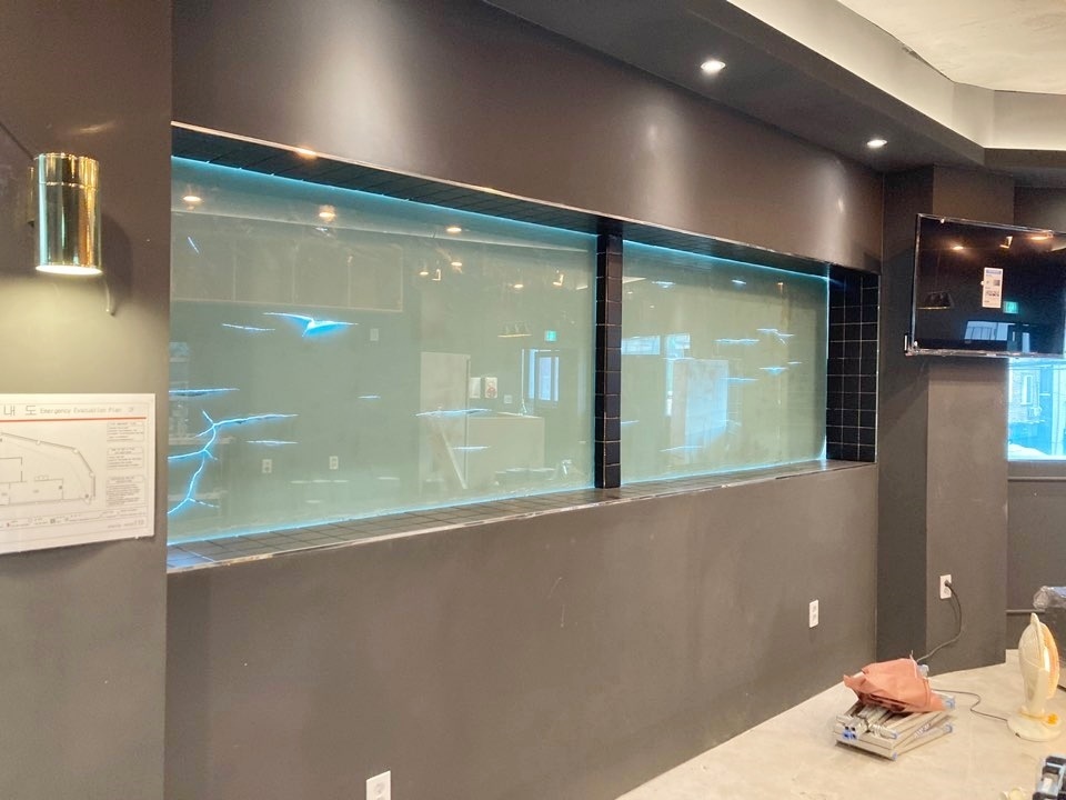 파이프로 틀을 만들어 주었고 아쿠아유리를 끼워주었습니다.