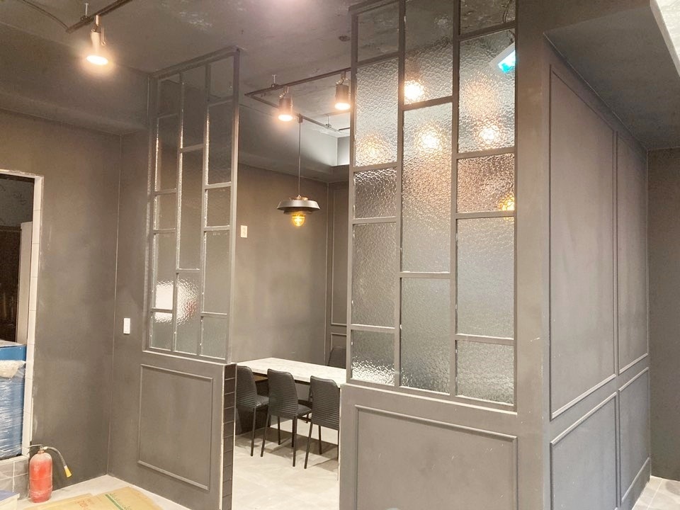 출입문은 가마찌도어로 제작하였고 고방유리를 끼워주었습니다.