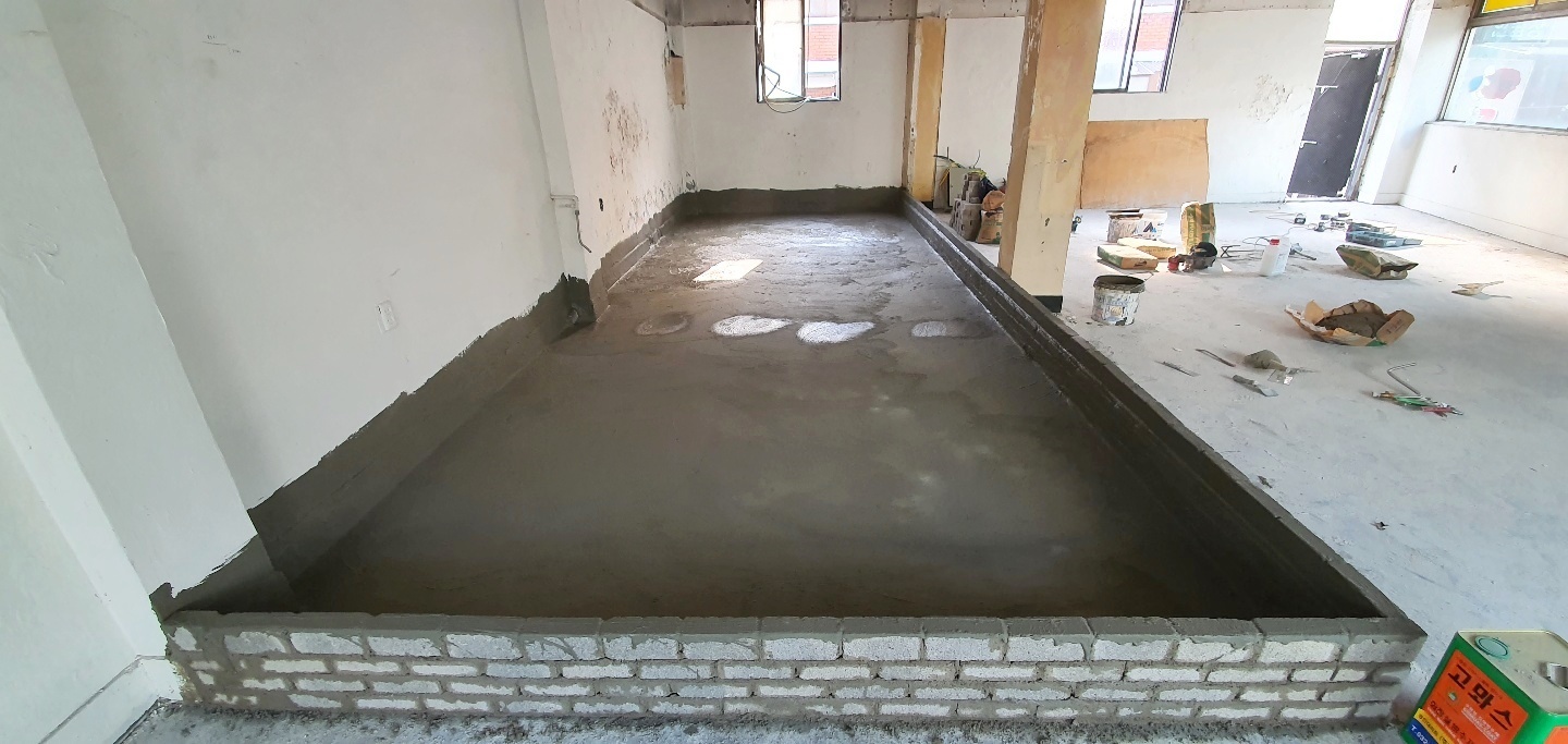 중국집이다보니 주방집기와 동선에 맞춰 조적을 쌓아주었고 배수, 배관작업을 해주었습니다.