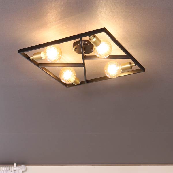 각진 프레임 속 다른 방향을 향하는 램프의 빛이 유니크한 디자인의 조명입니다