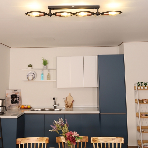 직선형태의 곧게 뻗은 꽃잎 모양의 인테리어 조명 브릿지 4등입니다