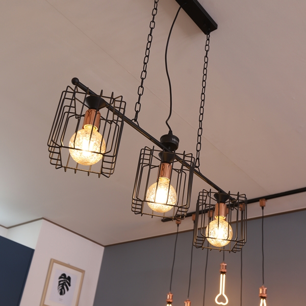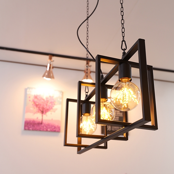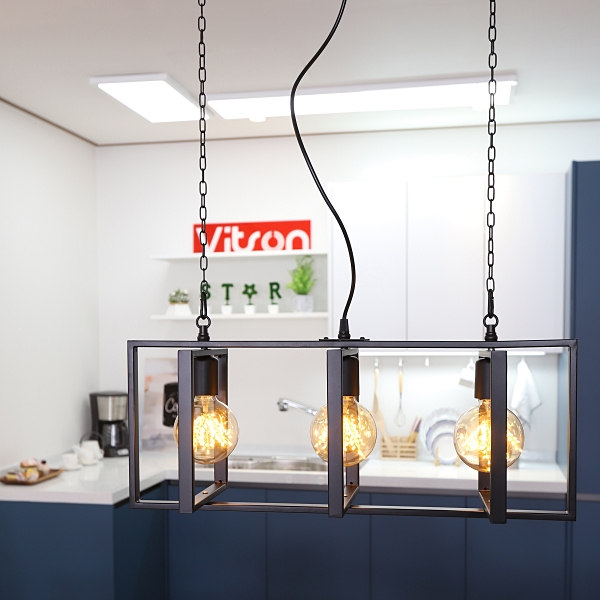 블랙 색사으이 심플함과 육면체 철장 디자인으로 높이 조절이 가능한 조명입니다