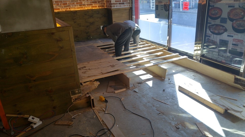 기존에는 육개장가게였는데 주방 빼고 전부 철거를 한 후 공사를 진행하였습니다.