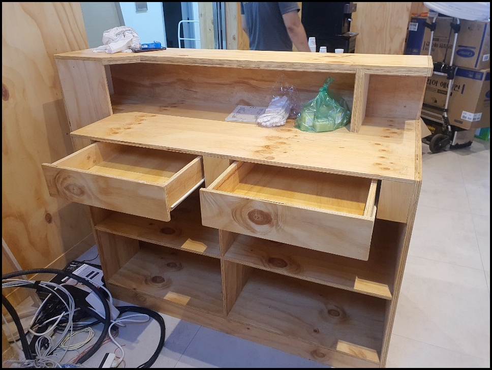 철거가 끝난 후에는 설비를 하고 목공작업을 해주었습니다.