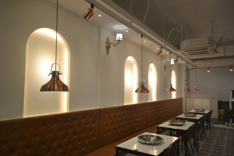 이 레스토랑은 다양한 문화의 요소들을 혼합하여 독창적인 인테리어를 선보이고 있습니다.