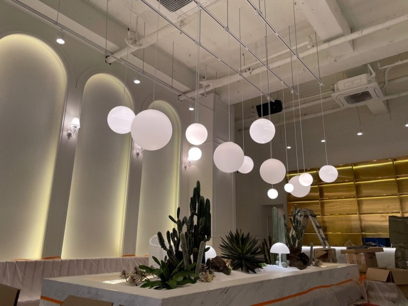 - 펜던트 조명: 곳곳에 배치된 펜던트 조명은 따뜻한 분위기를 조성해 줍니다.