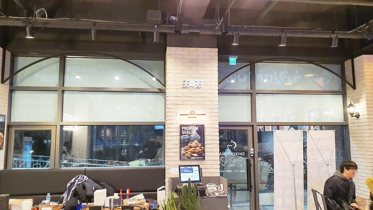 입구는 첫인상을 좌우하는 중요한 공간입니다. 청라 치킨집의 입구는 넓고 환하게 설계되어, 내부로 들어오는 순간부터 밝고 활기찬 느낌을 받을 수 있습니다. 로비는 고객들이 편안하게 대기할 수 있도록 편안한 소파와 테이블을 배치하였고, 벽면에는 매장의 아이덴티티를 나타내는 로고와 그래픽을 배치해 브랜드 이미지를 강화했습니다.